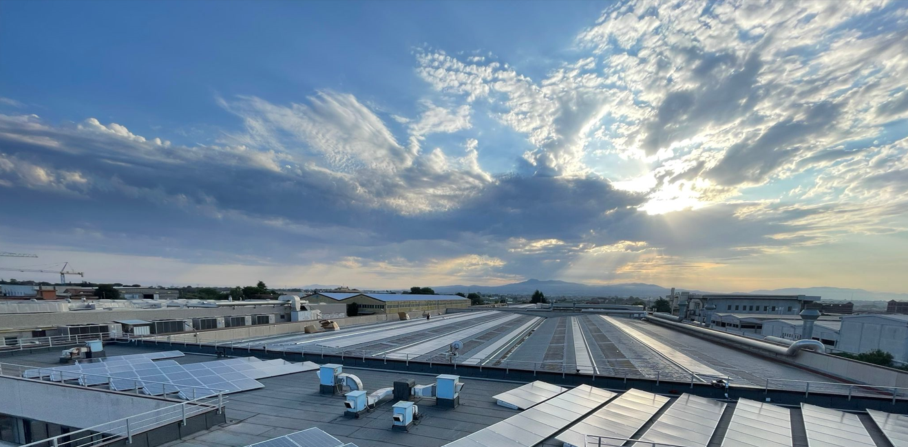 Realizzazione impianto fotovoltaico Postel Pomezia con posa di 1170 pannelli fotovoltaici su una superficie complessiva pari a circa 2500 m2.